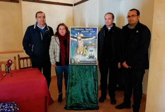 El Alcalde, Hugo Palomares, acompañado del párroco D. Luis Piñero y la Delegada de Cultura, Mª José Lugo, han presentado el cartel anunciador de la Semana Santa de Bornos 2018 “ALEA IACTA EST” del autor José Manuel Perea Perdiguero, también presente en el acto.