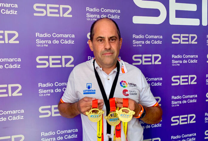 El ubriqueño Antonio Gómez ha conseguido tres medallas de oro en el Campeonato de Europa de Dragon Boat que se ha celebrado en Sevilla. El palista del Club Náutico se ha impuesto junto con sus compañeros campeones en las distancias de 2.000 metros, 500 y 200.