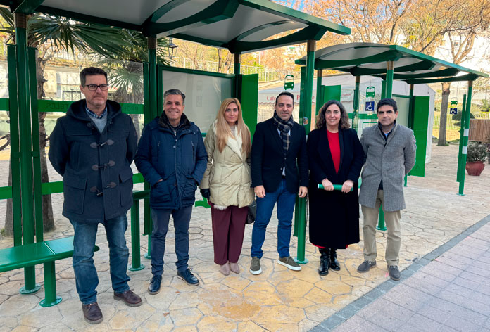 La delegada ha estado esta mañana con el alcalde Ubrique, Mario Casillas, y los concejales Francisco Gil y Marian Moreno; en la estación ubriqueña para inaugurar las dos marquesinas que se han instalado para «adecuar el espacio a los usuarios del transporte público y puedan bajarse de una manera decente, además de adaptarlo a las personas con discapacidad».