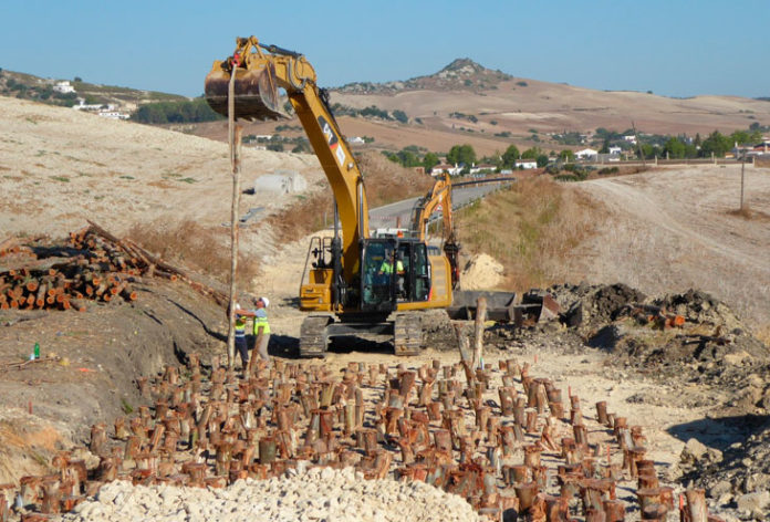 Para determinar la naturaleza del subsuelo y concretar la zona de actuación se encargó un informe geotécnico a la firma Cogesur. Conforme a ese estudio se delimitó el área de intervención: un tramo de 150 metros entre el kilómetro 6 y el 7´5 de la CA-6102. Las obras emplean una técnica constructiva clásica pero singular ya que se utiliza sobre todo en terrenos fangosos –como por ejemplo los de marisma- inestables y muy húmedos y basados en la instalación de pilotes de madera. En este caso se ha optado por pilotes de eucaliptos rojos, a razón de dos por metro cuadrado, que se hundirán en dos puntos del tramo en obras: en un ámbito se entierran verticalmente hasta una profundidad de 6 metros, y en otra parte se hundirán a una cota de 5 metros.