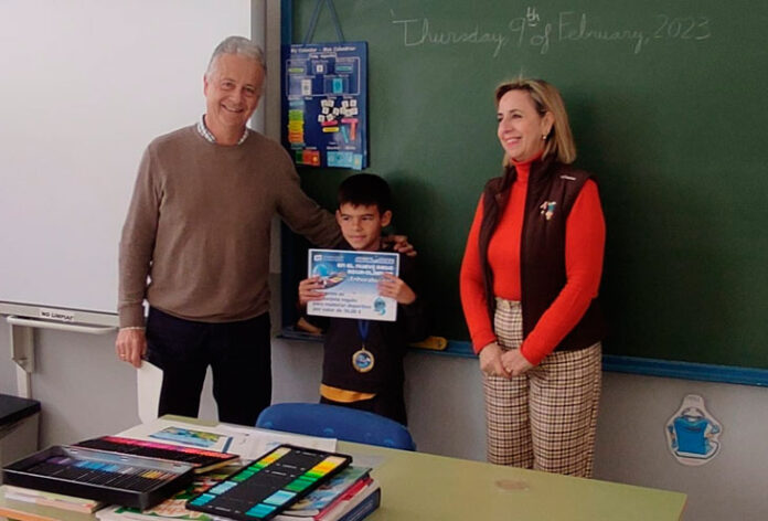 La entrega del premios tuvo lugar ayer en el colegio Benafélix, donde el premiado, Daniel Cano López, cursa sus estudios de Primaria. Hasta allí se han desplazado Isabel Mª Bazán, concejala de Educación, y Manuel Márquez, jefe de servicio de Aqualia en la localidad para entregarle su premio: un cheque regalo para material deportivo de 30€.