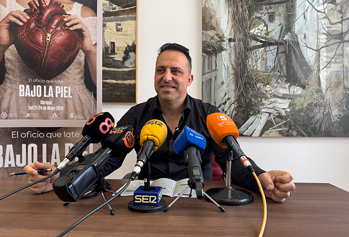 El alcalde ha estado acompañado por el ubriqueño Carlos Olmedo, diseñador del cartel anunciador de la feria.