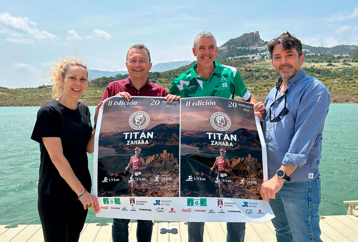 Esta mañana, Santiago Galván, alcalde de Zahara junto a Jónathan Macías delegado provincial de la FATRI en Cádiz, han presentado el cartel de la que será la segunda edición del Titán Zahara