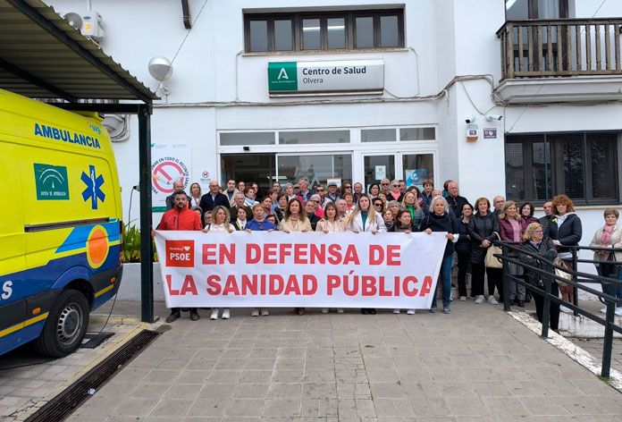 La alcaldesa de Olvera y secretaria de Turismo de la Ejecutiva provincial del PSOE de Cádiz, Remedios Palma, ha vuelto a participar esta mañana en la concentración organizada a las puertas del centro de salud de Olvera donde ha agradecido a los vecinos y vecinas «su apoyo, reivindicación y rechazo a lo que está ocurriendo» y donde ha reclamado más medios para atender a una población que supera la de la localidad, conforme al distrito sanitario.