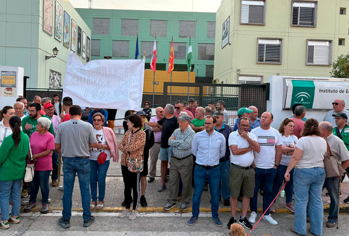 El portavoz y secretario general del PSOE en Alcalá del Valle, José Antonio Narváez, ha participado esta mañana en la concentración a las puertas del IEA Fuente Grande tras la decisión de la Junta de eliminar el único ciclo formativo de grado básico con dos cursos que hay en el centro educativo de la localidad.
