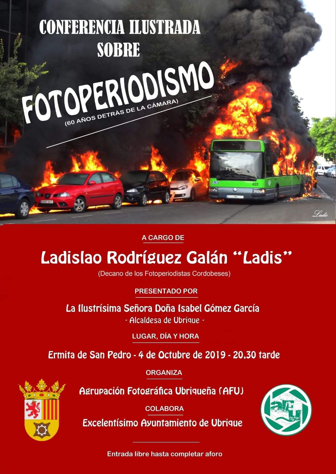 La Agrupación Fotográfica Ubriqueña celebra este viernes, 4 de octubre, su primera conferencia de entre tantos ambiciosos proyectos que tiene en mente. En esta ocasión será el cordobés Ladislao Rodríguez el encargado de explicar a través de 362 imágenes su idea de fotoperiodismo.