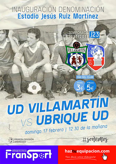 UD Villamartín y Ubrique UD tienen una cita con la historia. Concretamente la que escribió Jesús Ruiz Martínez, el Soleao, que dará nombre a partir del domingo al estadio de fútbol de Villamartín. El derbi servirá para homenajear a una figura que vivió sus mejores años futbolísticos entre estos dos municipios serranos.