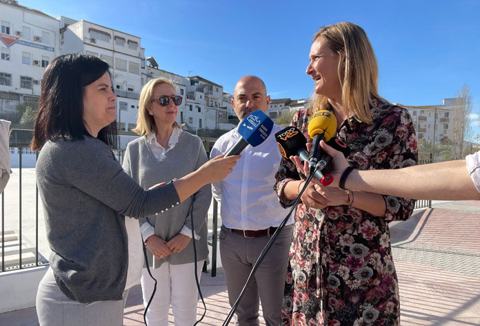 Isabel Gómez, alcaldesa de Ubrique, junto a Isabel María Bazán, concejala de educación, y Manuel Ángel Chacón, diputado provincial, informaban esta mañana de una de las últimas actuaciones que se han materializado en el pueblo de Ubrique
