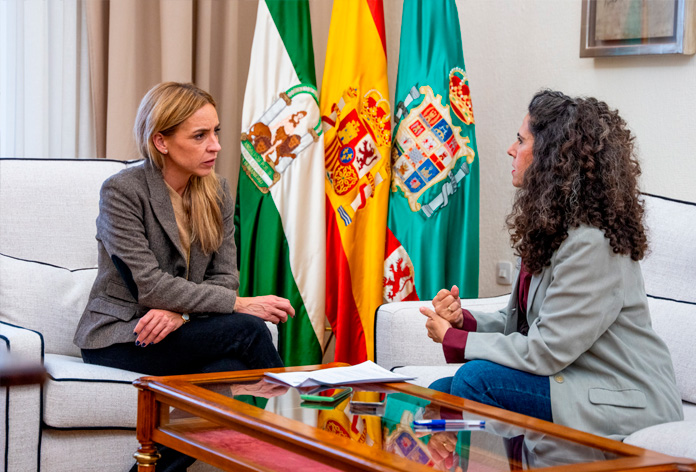 La presidenta de la Diputación, Almudena Martínez, ha recibido en el Palacio Provincial a la decana del Colegio Profesional de Periodistas de Andalucía (CPPA), la gaditana Lorena Mejías, tras su reciente elección al frente de la organización que representa los intereses profesionales del colectivo en la comunidad autónoma.
