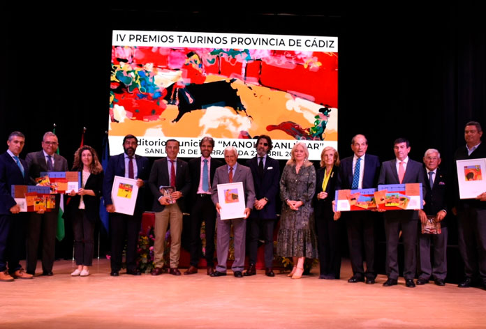 La delegada del Gobierno de la Junta de Andalucía en Cádiz, Mercedes Colombo, ha presidido en Sanlúcar de Barrameda la entrega institucional de los IV Premios Taurinos de la Provincia, acompañada del secretario general de Interior de la Junta, David Gil, y la presidenta del jurado de estos galardones, Elena Aguilar. En este acto, celebrado en el auditorio Manolo Sanlúcar, se ha subrayado el apoyo del Gobierno andaluz al mundo del toro.