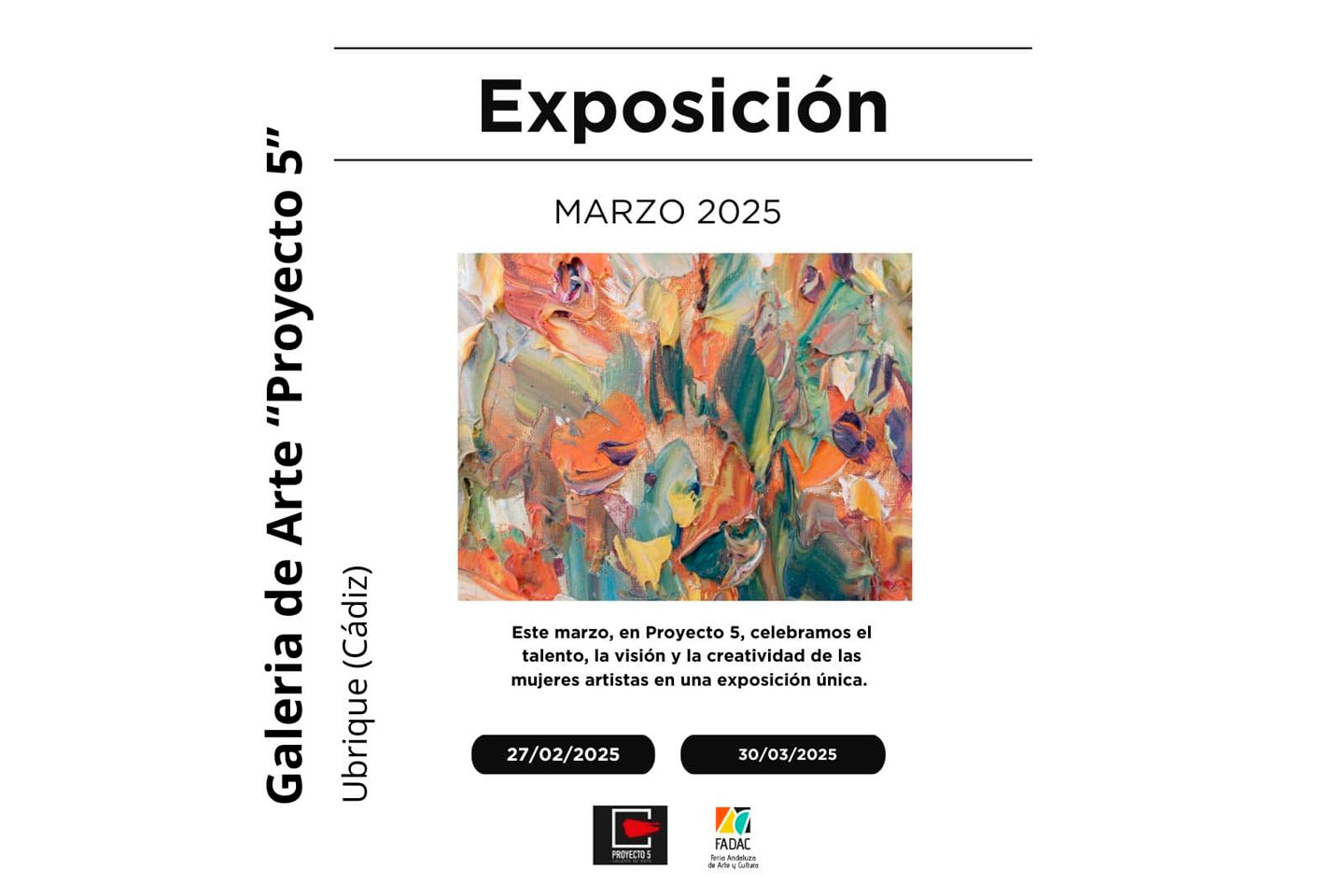Con motivo del Día de la Mujer, que se celebrará el próximo 8 de marzo, la galería de arte «Proyecto 5» (Ubrique) ha preparado una exposición dedicada a las «Mujeres en el Arte». Se trata de una muestra de 30 obras representativas de 15 mujeres, cuyo objetivo es visibilizar y reforzar el talento femenino en el mundo del arte. La iniciativa ha tenido una acogida abrumadora, con cientos de mujeres postulándose para exponer en la sala ubriqueña.
