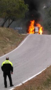 El incendio se provocó debido a la explosión de las bombonas de oxígeno que transportaban en su interior.