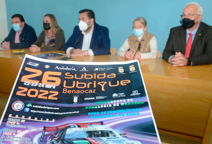 La Sierra de Cádiz está lista para vivir un nuevo fin de semana de pasión por el motor, velocidad y emoción con la próxima edición de la Subida a Ubrique–Benaocaz, a celebrar del 22 al 24 de abril. El diputado de Deportes, Jaime Armario; la alcaldesa de Ubrique, Isabel Gómez; la alcaldesa de Benaocaz, Olivia Venegas; el presidente de la Escudería Ubrique, entidad organizadora de la prueba automovilística, Pedro Carlos García; y el presidente de la Federación Andaluza de Automovilismo (FAA), Manuel Alonso Borbalán, han participado en la presentación de la vigésimo sexta edición de esta competición deportiva.