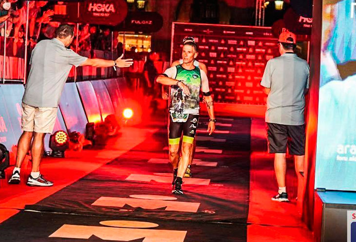 Oliver tuvo que recorrer 3,8 km. nadando, 180 km. en bicicleta por un circuito urbano, y acto seguido, correr una maratón que transcurrió con más problemas de lo habitual.