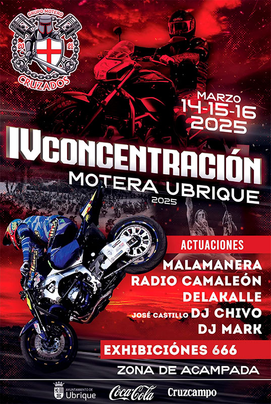 Este fin de semana, la localidad de Ubrique acoge la cuarta edición de la Concentración Motera, un evento organizado por el grupo motero «Cruzados» que reúne a cientos de visitantes de distintos puntos de España y congrega a más de 300 moteros locales. En esta ocasión, la cita se amplía un día más y contará nuevamente con zona de acampada, actuaciones musicales, exhibiciones y trofeos para los grupos más destacados.
