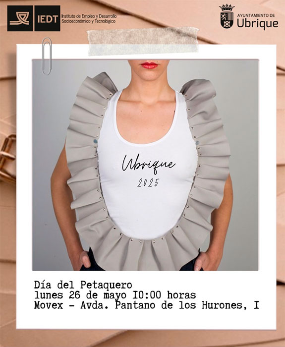 La jornada conmemorativa tendrá lugar el próximo lunes, desde las 10:00 hasta las 14:00 horas, en el propio centro MOVEX. Además, y coincidiendo con el Día del Petaquero, el Instituto de Empleo y Desarrollo Tecnológico (IEDT) dará a conocer tres nuevos cursos de formación profesional que se impartirán en Ubrique en los próximos meses. Según adelantó Gallego, se trata de las formaciones en: