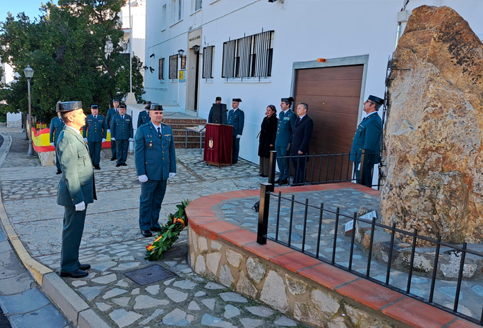 El evento ha sido copresidido por la Subdelegada del Gobierno, Blanca Flores, el Alcalde, Santiago Galván, y el Coronel de la Comandancia, Luis Martín. Durante la ceremonia se hizo entrega de un diploma a seis guardias civiles que prestaron servicio en Zahara y se depositó una corona de laurel frente al monolito en recuerdo de todos los guardias caídos en acto de servicio.